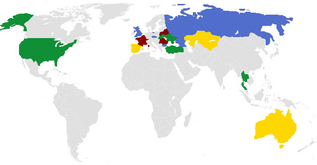 Начинают развиваться: Австралия, Беларусь, Великобритания, Испания, Казахстан, Румыния, Россия, Таиланд, Турция, Украина, Франция.